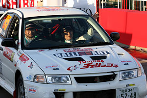 こちらは藤井・岸本組。このSSでも、ヘッドライトをつけて観客にアピールしています