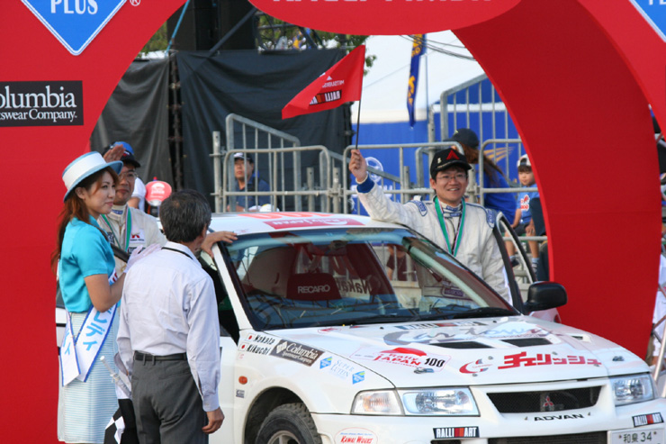 中田・菊池組は総合34位で無事完走し、ポディウムで観客の祝福を受けました。