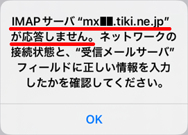 「IMAPサーバが応答しません」と表示される