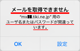 「メールを取得できません(ユーザ名またはパスワードが間違っています)」と表示される