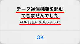 「データ通信機能を起動できませんでした(PDP認証に失敗しました)」と表示される