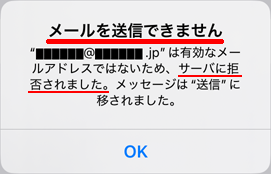 - 送信先メールアドレスの@の前の部分に誤りがあります。