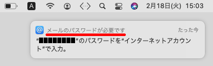 画面右上に「メールのパスワードが必要です」と表示される
