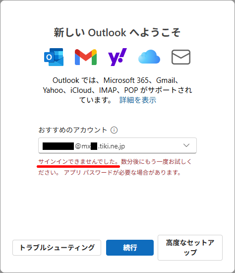 「サインインできませんでした。」と表示される